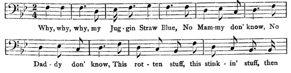 And the Old Witch man says to her, "Your head and your lights is for my dog, and your liver is for my supper!" So the girl started a song,--