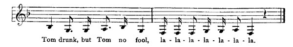 Tom drunk, but Tom no fool, la la-la-la-la-la-la.