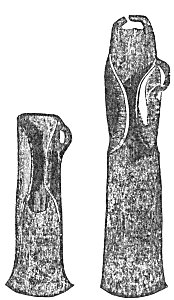Compare this picture of a copper axe from a mound near Laporte, Indiana, with this representation of a copper axe of the Bronze Age, found near Waterford, Ireland. Professor Foster pronounces them almost identical.