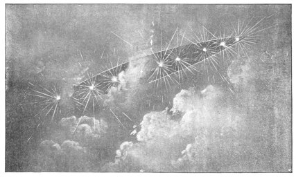 In order that we might be wholly out of the range of the influence of the storm, I gave directions to rise above the level of the disturbance, if such a region of calm existed within reach, and there set the keys so as to stop all propulsion. Receiving this order, the conductor augmented the repulsion force by means of the levers of degree, and we rose steadily up, up, up--above the clouds, above the rush of the hurricane, into a clear, calm atmosphere, intensely cold, almost thirteen miles from the earth's surface. Could we have had a view unobstructed by stormclouds, we were just about high enough to afford us a horizon of three hundred and fifty miles. Soon after this order I went to my room to bed. With the morning the storm had not decreased in fury; and occasional flurries in the air above us proved that the storm-area on the surface must be of vast extent. The cold outside was too intense to consider, even for an instant, the opening of the deck; the sky was almost black in the depth of its blueness; the sun, shorn of much of its dazzling brightness, appeared strangely dim, and the stars were visible. The steady motion of the air-dispensers as their wheels and pistons worked to maintain the interior air at a normal pressure was painfully apparent in the awful stillness, while the fizz of the air escaping through the fine crevices around the windows and edges of the deck made such a noise that I ordered the setscrews tightened and the ventilator pipes opened. Had the frost not hindered vision through the windows and, with the clouds, prevented a view of the earth's surface, a sight most peculiar would have been presented. The view toward the extended horizon would have made the apparent union of earth and sky seem almost on a level with us; but directly beneath, the fun separation from the solid globe would have seemed, not like a ball but like a huge bowl, ornamented with landscape scenes in its interior. As,