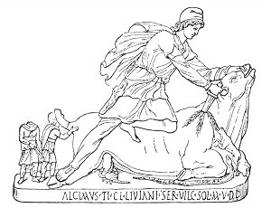 (Discovered in 1861 near the ruins of a Roman fort, in the Odenwald, Hesse. T. et M., Plate VI.)