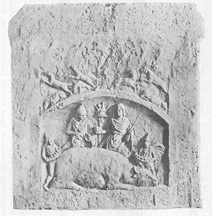 REVERSE OF THE GRAND MITHRAIC BAS-RELIEF OF HEDDERNHEIM, GERMANY.