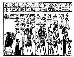 3, 4. Two jackal-headed gods called ANPU and NEHEM-KHERU, or NEHA-KHERU.