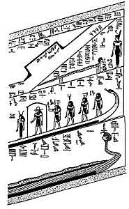 [paragraph continues] As the further course of the corridor will be described under the Fifth Hour we may pass on to consider the Boat of the Sun, and the means by which the god makes his way onward.