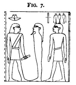 "thee thy mouth[1] and thy teeth." The Kher-heb next calls on the Sem priest four times: "O Sem, take the Seb-ur[2] (Fig. 5) and open the mouth and the eyes"; and while the Sem priest is performing the ceremony the Kher-heb continues: "Thy mouth was closed, but I have set in order for thee thy mouth and thy teeth. I open for thee thy mouth, I open for thee thy two eyes. I have opened for thee thy mouth with the instrument of Anubis. I have opened thy mouth with the instrument of Anubis, with the iron tool with which the mouths of the gods were opened. Horus, open the mouth, Horus, open the mouth. Horus hath opened the mouth of the dead, as he whilom opened the mouth of Osiris, with the iron which came forth from Set, with the iron tool (Fig. 6) with which he opened the mouths of the gods. He hath opened thy mouth with it. The dead shall walk and shall speak, and his body shall [be] with the great company of the gods in the Great House of the Aged one in Annu, and he shall receive there the ureret crown from Horus, the lord of mankind." The Kher-heb next says: "Let the Ami-Khent priest (Fig. 7) stand behind him (i.e., the deceased), and say, 'My father, my father,' four times." The eldest son of the deceased then stands behind the deceased, and in his