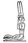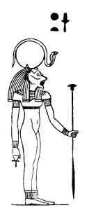 upon her head (see Fig. 16). It means Mistress of the house, or Lady. Typhon is a hippopotamus, usually walking on its hind legs, and with female breasts (see Fig. 17); sometimes with sword in his hand, to show his wicked nature. He is the chief author of evil. In Acts xxvii. 14, a tempestuous wind is called a Typhonian wind.