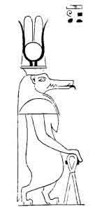 jackal (see Fig. 15), or is represented as the animal a jackal. He never takes a foremost place among the gods, but usually stands as the attendant or servant of Osiris.