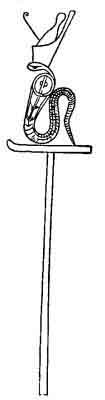 betray the secret of Abydos, the great secret of the goddess Isis. This boat of Ra, in a lighter and smaller form, was placed upon the altar of some of the temples, and carried about on men's shoulders in the processions, with the statue of the god in it. In these processions a variety of the sacred images and emblems were carried about upon the top of poles, like so many military standards; and among them we see the image of the serpent in the manner imitated by Moses in the desert, as described in Numbers xxi. 9 (see Fig. 56).
