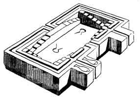 but the priests ever entered the small dark rooms beyond. The portico was handsome but heavy, and grand rather than beautiful; the flat roof was upheld by a row of strong closely set columns (see Fig. 32).