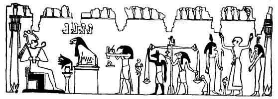 the mummy of the dead man had been ferried across the water, the next ceremony was his trial before the judge Osiris.