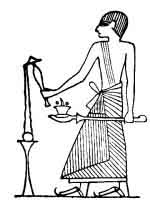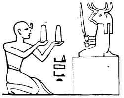 Greeks, he called upon the god in the Egyptian language. A vase of water, or sometimes of wine, and metal cup containing a small charcoal fire, Were often presented to the altar, as figurative of divine honours (see Fig. 60).