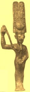 In his Set form, Sebek was regarded in some parts as an enemy and devourer of the dead. But his worshippers believed that he would lead souls by "short cuts" and byways to the Egyptian paradise. In the Pyramid Texts he has the attributes of the elfin Khnûmû, whose dwarfish images were placed in tombs to prevent decay, for he renews the eyes of the dead, touches their tongues so that they can speak, and restores the power of motion to their heads.