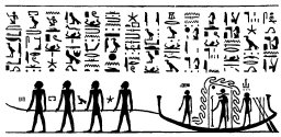 "This great god is towed along by the gods of the Tuat, and this great god advanceth to the Boat of the Earth, which is the bark of the gods. Ra. saith unto them:--'Hail, ye gods who bear up his Boat of the Earth, and who lift up the Bark of the Tuat, may there be support to your forms and light unto your Bark. Holy is he who is in the Boat of the Earth. I make to go back the Bark of the Tuat which beareth my forms (or, attributes), and verily I travel into the hidden habitation to perform the plans which are carried out therein.' ENNURKHATA, ENNURKHATA [saith], 'Praised be the Soul which the Double Bull hath swallowed, and let the god be at peace with that which he hath created.'"
