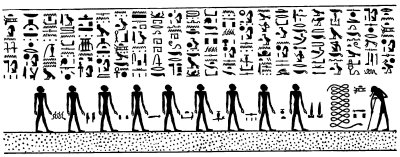The Gods of the Third Division of the Tuat towing the Boat of Ra. The Eight Bearers of the Boat of the Earth and its Seven Gods.