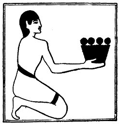 The SEM priest next brought in a vessel four balls, or round cakes, called shaku, and whilst he presented these the Kher heb said:--