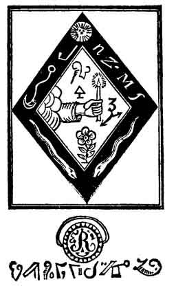 II. Gives the love and complaisance of the entire female sex. It should be embroidered in silver on black satin. The evoking words are NADES, SURADIS, MANINER, pronounced with the ring-which should be on the middle finger of the left hand-pressed against the lips. This conjuration ensures the manifestation of a genius with rose-coloured wings, who, if addressed with the words SADER, PROSTAS, SOLASTER, Will traverse all space to transport you the lady of your heart, though she were the queen of the Caliph's seraglio. At the words MAMMES, LAHER, she will be removed by four slaves. It will be observed that this is occult ribaldry.