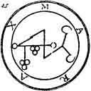 MARAX.--The Twenty-first Spirit is Marax. 1 He is a Great Earl and President. He appeareth like a great Bull with a Man's face. His office is to make Men very knowing in Astronomy, and all other Liberal Sciences; also he can give good Familiars, and wise, knowing the virtues of Herbs and Stones which be precious. He governeth 30 Legions of Spirits, and his Seal is this, which must be made and worn as aforesaid, etc.