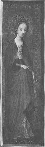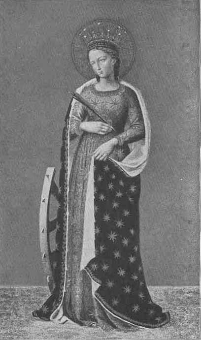 hands and unusually large foreheads. Of a similar type, though not quite so pronounced, are the St. Catharines by Stephen Lochner and by the Master of the Life of Mary, while an unknown artist of the Westphalian school endows his St. Catharine with hands of normal size.