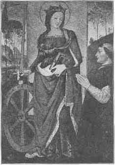 St. Catharine of Siena was a most striking figure in the Middle Ages and did not fail to impress the people with her extraordinary powers as a saint. She lived 1347-1380, at the time when the idea of the mystic marriage had already taken deep root in the hearts of the faithful. Being the daughter of a poor dyer she rose from the humblest surroundings. As early as in her thirteenth year she joined the Dominican order in which solely because of her sanctity