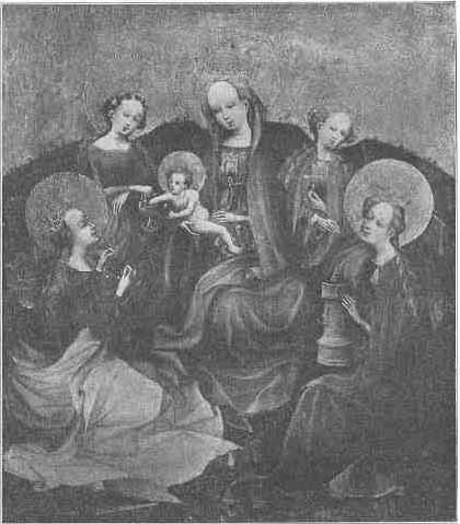 MADONNA AND CHILD, WITH SAINTS BARBARA AND CATHARINE.