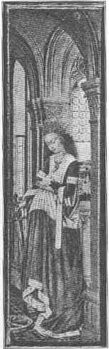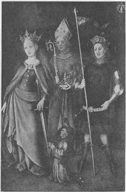ln further evidence of the extraordinary popularity of St. Catharine in Germany we reproduce two pictures of Master Wilhelm, who may have used the same model for both, showing here once in profile and then full face. Yet we shall find that all his saints possess a great family likeness in that they possess extremely small