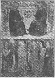 The notion that Christ as the Viceroy of God on earth had a bride constantly remained as much in the minds of the people as the idea of the anti-Christ. The world was regarded as divided into two camps, the kingdom of God governed by Christ, identified with the Church under the leadership of the Pope, and the empire of unbelief which composed the entire pagan world and also the heretics of Christianity. In the mystic literature these ideas turn up again and again, and during the Middle Ages the bride of Christ is usually thought to be the Church, while among Protestants it is generally the soul. As an instance we will quote a passage from Hildegard of Bingen, an abbess and a prophetess who saw visions quite similar to those of St. John the Divine in the Revelations. She herself was almost illiterate, but her adviser, presumably her father confessor, reduced her prophecies to an approximately correct Latin and had them published.