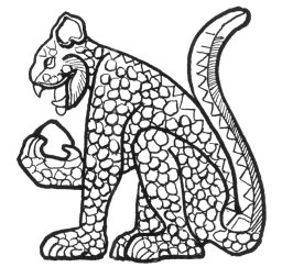 196:6 Maya, chat-bolay, identified by Goldman as Hernandez's Jaguar, Felis hernandesii goldmani Mearns, and called tigre in Spanish. Pio Perez (1866-77) defines it as "el leoncillo" and Pacheco Cruz (1919, p. 14), as "tigrillo." Balam is the usual Maya word for jaguar.