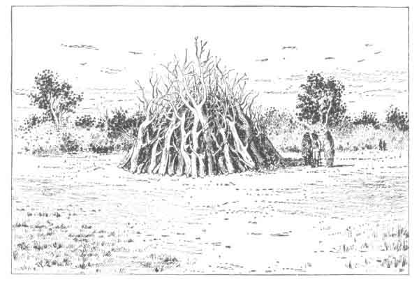 circumference. Large quantities of this dry wood were also brought and placed outside the space allotted to the corral, to replenish the fires. when needed.