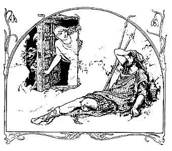 "Well, I will stop them," said the magician, "until the company you send in pursuit return." And the magician placed a wood before them through which no man could go, but the sons of Uisnech marched through the wood without halt or hesitation, and Deirdre held on to Naois's hand.