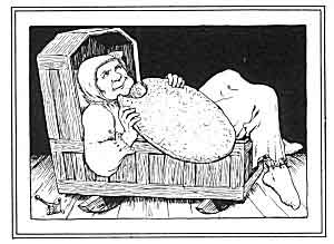 "Well, honest man," replied Oonagh, "if you're not able to eat the bread, say so quietly, and don't be wakening the child in the cradle there. There, now, he's awake upon me."