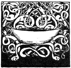 The Spear was in the lake then. Great clouds of steam rose about it from the black water. Out of the hissing steam Demons of the Air were born. The Demons were great and terrible. There was an icy wind about them. They found their way into Ireland. They took prey there in spite of the De Danaans. They made broad tracks for themselves. The Fomor followed in their tracks. It was then that misfortune came to the De Danaans. The people of the Fomor got the better of the De Danaans. They took the Cauldron of Plenty and the Magic Harp from the Dagda. They made themselves lords and hard rulers over the De Danaans, and they laid Ireland under tribute. They were taking tribute out of it ever and again till Lugh Lauve Fauda came. 'Twas he that broke the power of the Fomor and sent the three sons of Dana for the Spear. They had power to draw it out of the lake. They gave it to Lugh, and it is with him it is now, and 'tis he will set it up again in the middle of Ireland before the end of the world.