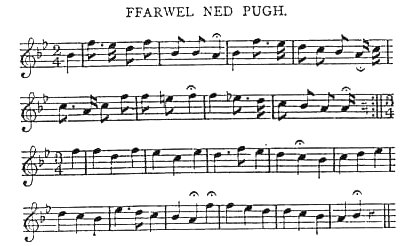 One Morgan Gwilym, who saw the fairies by Cylepsta Waterfall, and heard their music dying away, was only able to recall the last strain, which he said sounded something like this: