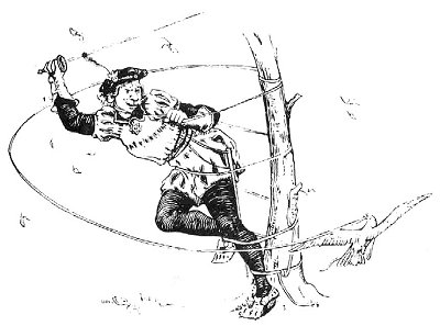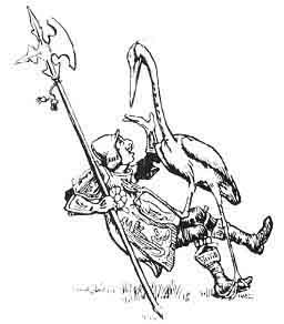 Slowly, slowly they moved to stately music till they came past the trees on which the birds were settling. A word from Prince Florentine, the goshawk, and all rose into the air, herons beneath, cygnets above, and goshawk circling above all. The weddineers wondered at the sight when, swoop! the herons were down among them, scattering the men-at-arms. The swanlets took charge of the bride, while the goshawk dashed down and tied the bridegroom to a tree. Then the herons gathered themselves together into one feather bed and the cygnets placed their mother upon them, and suddenly they all rose in the air, bearing the bride away with them in safety towards Prince Florentine's home. Surely a wedding party was never so disturbed in this world. What could the weddineers do? They saw their pretty bride carried away and away till she and the herons and the swans and the goshawk disappeared, and that very day Prince Florentine brought Earl Mar's daughter to the castle of the queen his mother, who took the spell off him and they lived happy ever afterwards.