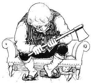 'Oh, here's a little boy for supper,' said Mr Miacca, 'and I've forgot the herbs. Mind him, will ye, while I go for them.'