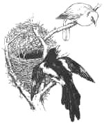 So it went on, every bird taking away some knowledge of how to build nests, but none of them waiting to the end. Meanwhile Madge Magpie went on working and working without looking up till the only bird that remained was the turtle-dove, and that hadn't paid any attention all along, but only kept on saying its silly cry: 'Take two, Taffy, take two-o-o-o.'