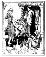 But when he heard the king's command, he dried his eyes and bade them bring shears to cut him loose, for his hair had bound him a fast prisoner and he could not move. And then he sent them for rich clothes, and jewels, which he put on; and he ordered them to saddle the white horse, with gold and silk, that he might ride to meet the king.