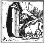 'There is one,' replied Habetrot, 'whom I bid to come here at this hour, and he has heard my song through the self-bored stone.' So saying she rose, opened another door, which was concealed by the roots of an old tree, and invited the pair to come in and see her family.