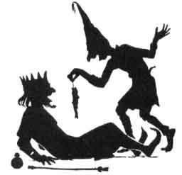 THERE lived formerly in the County of Cumberland a nobleman who had three sons, two of whom were comely and clever youths, but the other a natural fool, named Jack, who was generally engaged with the sheep: he was dressed in a parti-coloured coat, and a steeple-crowned hat with a tassel, as became his condition. Now the King of Canterbury had a beautiful daughter, who was distinguished by her great ingenuity and wit, and he issued a decree that whoever should answer three questions put to him by the princess should have her in marriage, and be heir to the crown at his decease. Shortly after this decree was published, news of it reached the ears of the nobleman's sons, and the two clever ones determined to have a trial, but they were sadly at a loss to prevent their idiot brother from going with them. They could not, by any means, get rid of him, and were compelled at length to let Jack accompany them. They had not gone far, before Jack shrieked with laughter, saying 'I've found an egg.' 'Put it in your pocket,' said the brothers. A little while afterwards, he burst out into another fit of laughter on finding a crooked hazel stick, which he also put in his pocket; and a third time he again laughed extravagantly because he found a nut. That also was put with his other treasures.