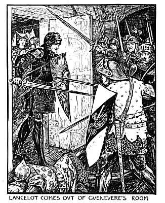 'Fair Lords,' said Sir Lancelot, 'leave this noise, and I will open the door, and you may do with me what you will.'