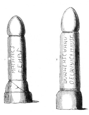 THESE votive columns, in the form of a phallus--strange monuments of a shameful worship--each bear an inscription in the Uscan language and character.