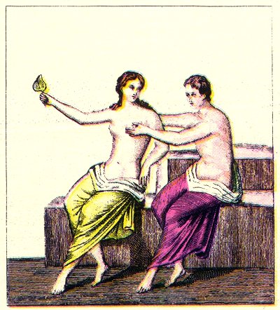 It was the custom at Rome to give the bride a quince to eat before conducting her to the nuptial bed. We may therefore consider this fresco as a representation of the first private intercourse between a young married pair.