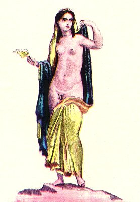 The hermaphrodite here represented gracefully raises the mantle in which he is enveloped, and reveals at one and the same time the organ of virility and a woman's breast.