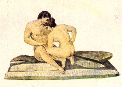 THIS fresco, found at Pompeii, is unquestionably, as regards merit of execution, one of the most remarkable of them all. We stated in our Introduction that obscene paintings entered at Rome into the domain of second-rate painters; but, making allowance for the decline of the art, it cannot be doubted that the author of this fresco must have been a very skilful artist for his time. Contrary to usage, we here find some expression in the features of the two actors: their attitude has nothing trivial; it has that natural character stripped of dignity which strikes and humiliates us, even at the moment when our imagination is fascinated by amorous desires. As is usual with natives of the South, the flesh-tints of the hero of this scene are of a very decided brown. The right arm of the woman, resting on her haunch, doubtless leaves something to be desired; but it is a foreshortening--a rock against which more than one modern painter has split.