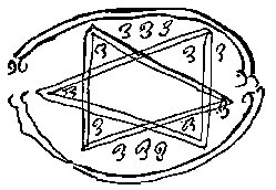Says Du Potet: "When I trace upon the floor with chalk or charcoal this figure . . . a fire, a light fixes itself on it. Soon it attracts to itself the person who approaches it: it detains and fascinates him . . . and it is useless for him to try to cross the line. A magic power compels him to stand still. At the end of a few moments he yields, uttering sobs. . . . The cause is not in me, it is in this entirely kabalistic sign; in vain would you employ violence." *